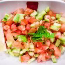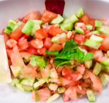 Salade fraîche de tomates, concombres, oignons et herbes, assaisonnée au citron.