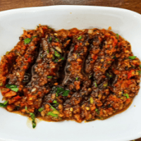 Salade turque épicée à base de tomates, poivrons et herbes fraîches.